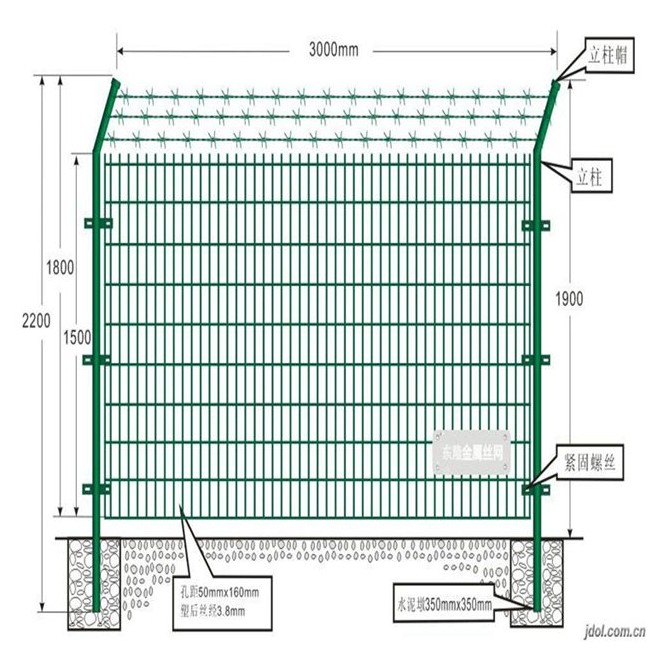 合適的折彎,造就了此種產品美觀效(xiào)果,而且(qiě)表麵采用多種(zhǒng) 顏色的浸塑(sù)處理,如黃色,綠色,紅色,立柱與網片不(bú)同顏色的搭配更是令人賞心悅目,同時此種(zhǒng)產品多采用帶底盤立柱,安裝隻需打好膨脹螺栓,非常的快捷。